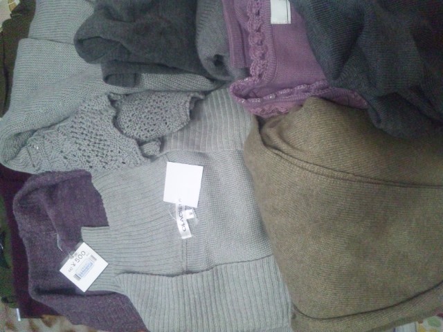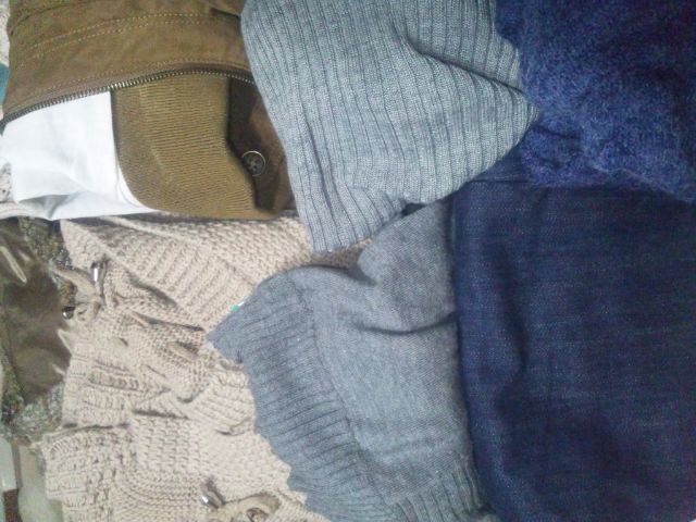 冬物のニットやチュニック、ジャケット、ジーパン